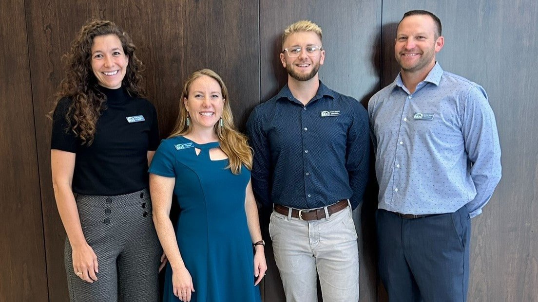 The BB2C Network Team from left to right: Emily Bentley, Education Engagement Specialist; Claire Ramsey, Network Resource Coordinator; Jordan Spence, Network Regional Coordinator; Jeremy Ward, Network Director
