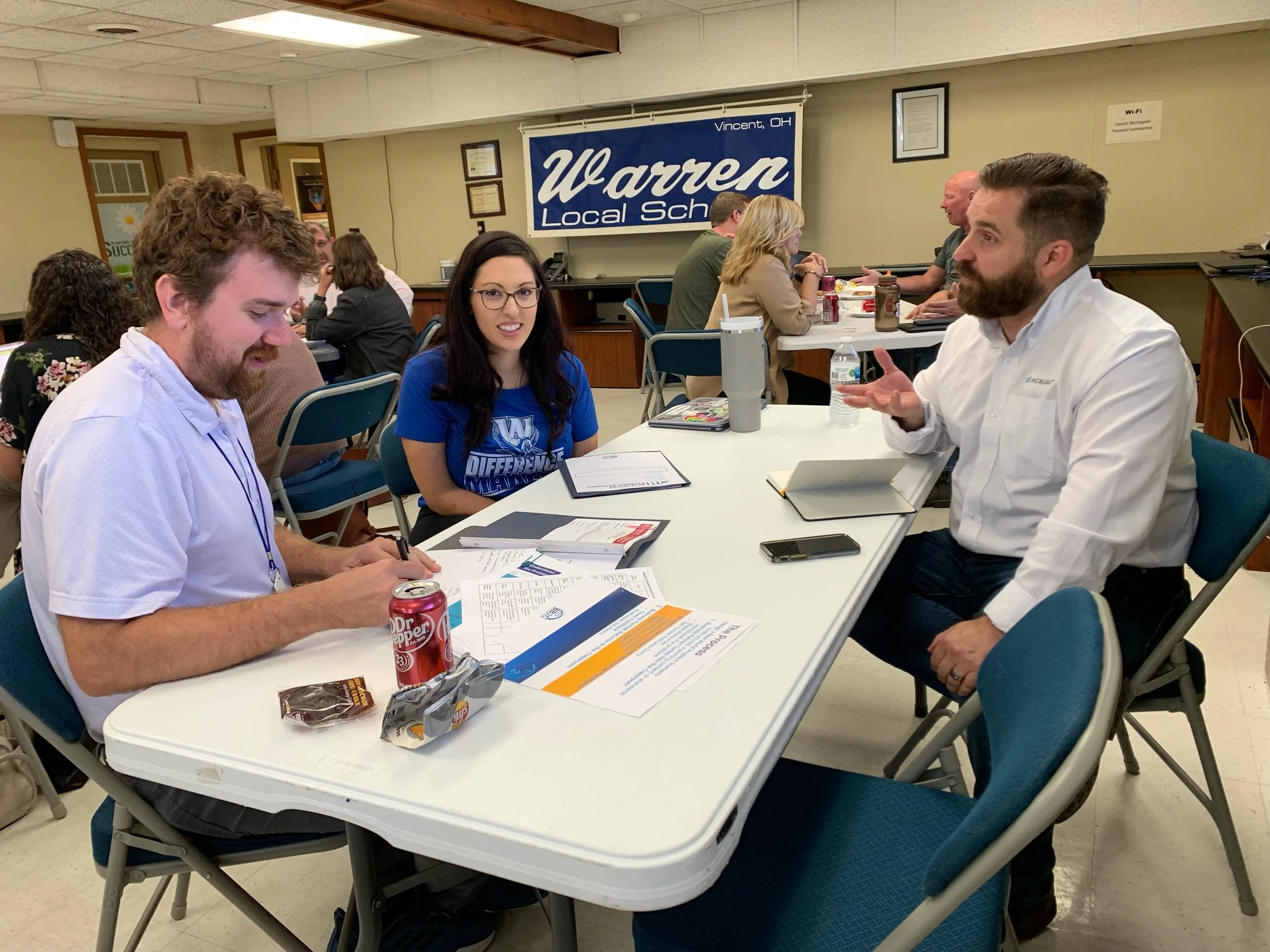 Educators at Warren Local Schools meet with business representatives and BB2C staff to implement Real World Problem Scenario.