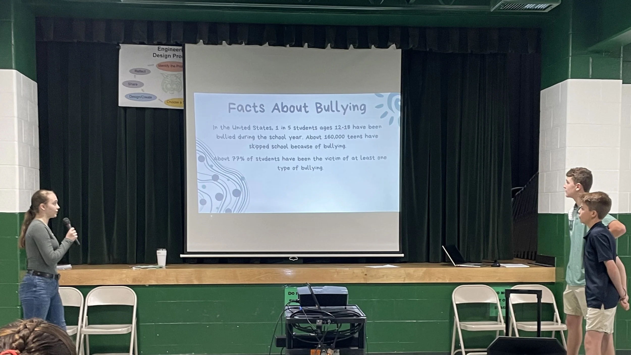 From May 6th - 13th students had a chance to brainstorm, research, create, and polish their solutions. They, then, presented their solutions to their teachers and classmates. The top two winning teams from each grade had the chance to travel to the opposite school to present to a panel of judges composed of community members and BB2C staff. The third- and fourth-place teams also had a chance to present to the panel of judges at their home schools.
