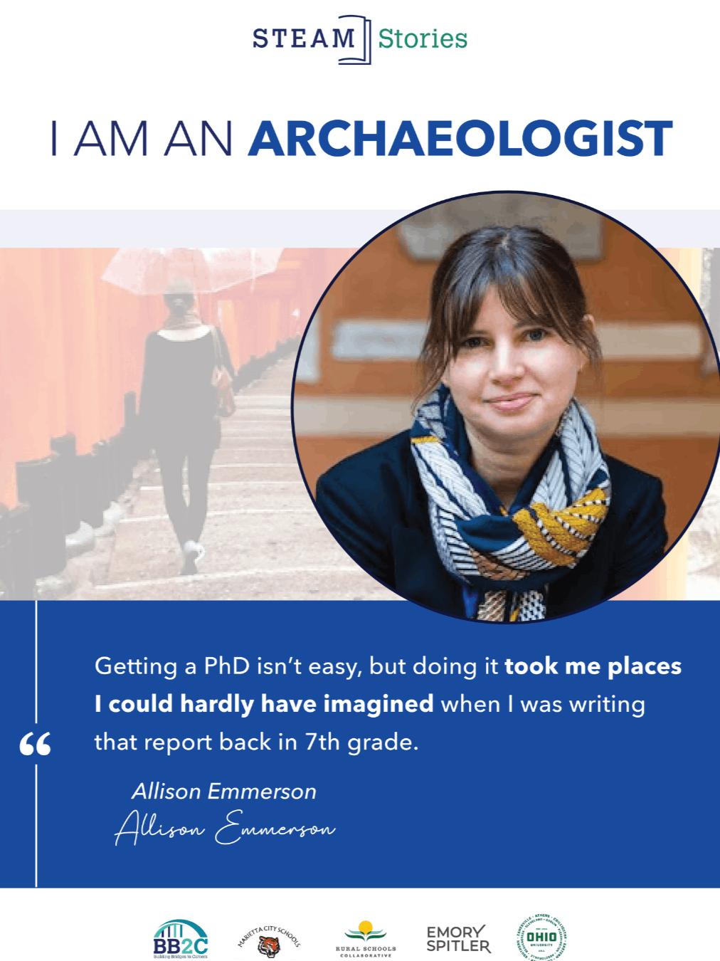 Archaeologist, Allison Emerson STEAM Story Materials Click Here to Download 12X16 Poster Click Here to Download Story Click Here to Download 18X 24 Poster