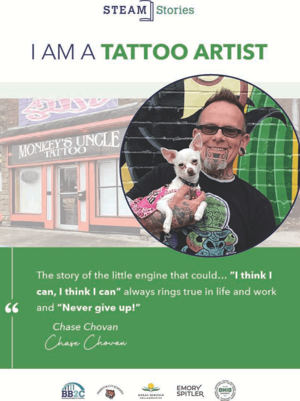 Tattoo Artist, Chase Chovan STEAM Story Materials Click Here to Download 12X16 Poster Click Here to Download Story Click Here to Download 18X 24 Poster