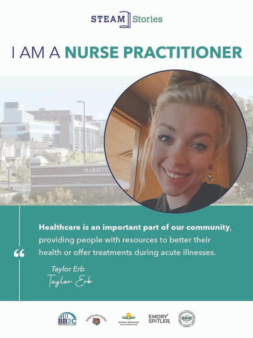 Nurse Practitioner, Taylor Erb STEAM Story Materials Click Here to Download 12X16 Poster Click Here to Download Story Click Here to Download 18X 24 Poster
